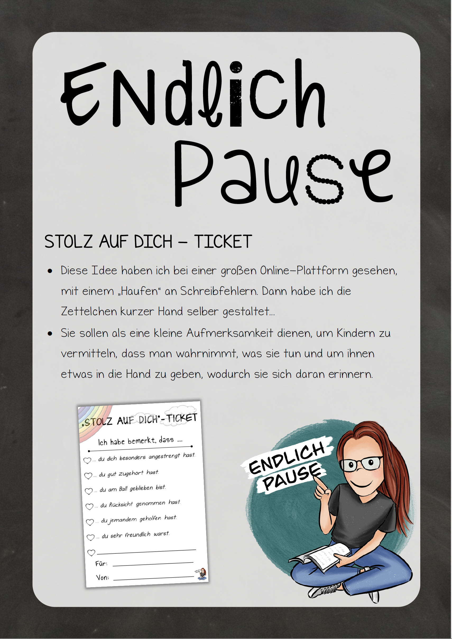 Einfach mal ein kleines Zettelchen auf den Tischlegen oder heimlich ins Federmäppchen oder in die Jackentasche stecken?! Da würde sich doch jede/r drüber freuen!!! Viel Spaß damit!