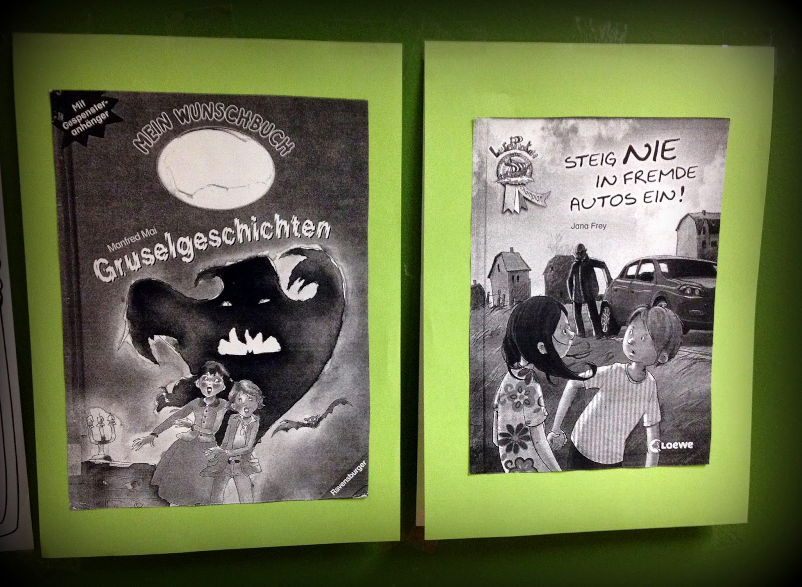 Diese Woche ging es also los mit unseren Büchervorstellungen. Ich sehe die Sache ganz locker und eigentlich einfach als eine erste Übung, vor der Klasse zu sprechen und mal wieder etwas Geübtes vorzulesen. Außerdem ging es auch darum, sich an einen Termin zu halten, nämlich den, den wir für die Vorstellung vereinbart hatten. :o) Ist ja nicht so einfach, erstens daran zu denken und zweitens dann auch fertig zu sein. Ich muss sagen, die ersten Kindern haben das auch wirklich schön gemacht. :o)