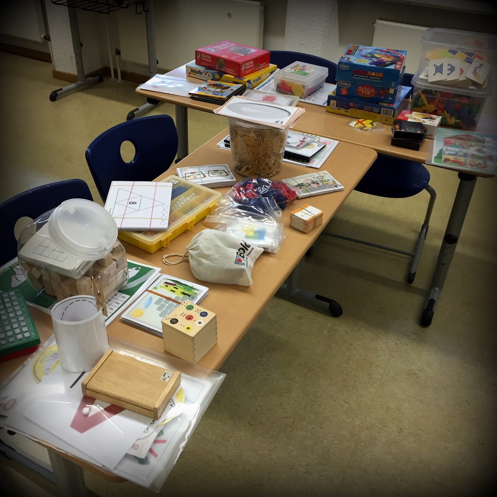 Am Punkt der größten Verzweiflung habe ich erstmal überlegt den ganzen Kram nach Mathe, Deutsch, Spielen, Knobeln/Konzentration/Strategie und „Sonstiges“ zu sortieren. Hier das Ergebnis: