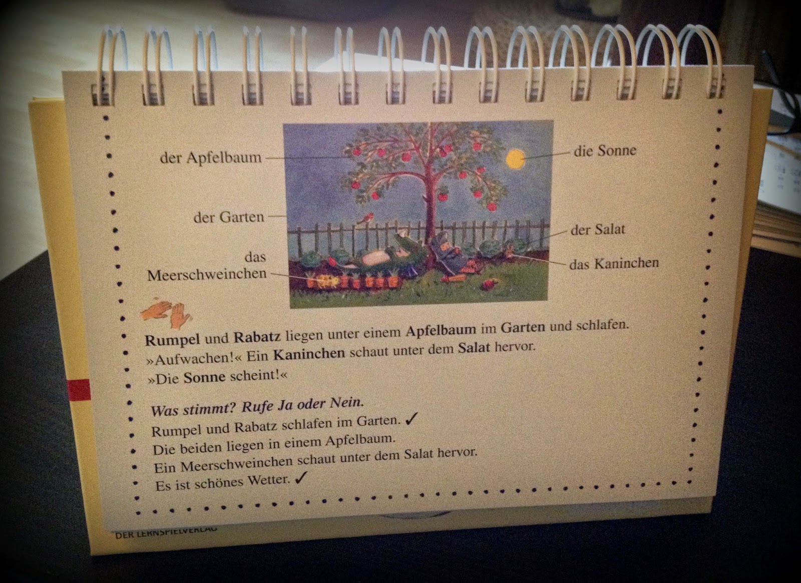 Diese kleinen Aufgaben sind erstaunlich vielfältig gestaltet. Das hat mich echt überrascht… Nachsprechen, „Dinge“ benennen, Fragen beantworten, Sätze zu Ende sprechen und so weiter…