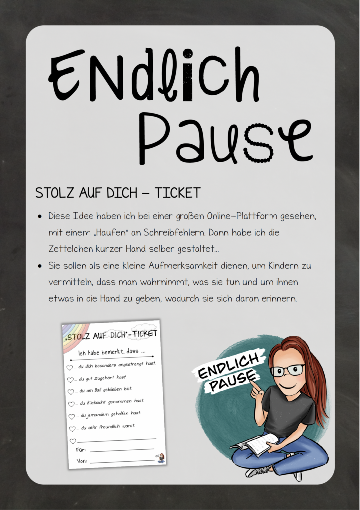Einfach mal ein kleines Zettelchen auf den Tischlegen oder heimlich ins Federmäppchen oder in die Jackentasche stecken?! Da würde sich doch jede/r drüber freuen!!!