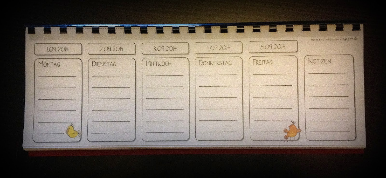 Hier ist übrigens ein Bild von dem Kalender. Der gefällt mir selber echt gut (das ist nicht bei jedem Material der Fall) und ich bin grad sehr froh, dass ich die Idee hatte. Ich hatte keine Lust einen für den Rest von 2014 und einen für 2015 zu kaufen und dann noch zum Preis von nur 1,50 pro Stück 4,95 Versand zu zahlen! DOOF!