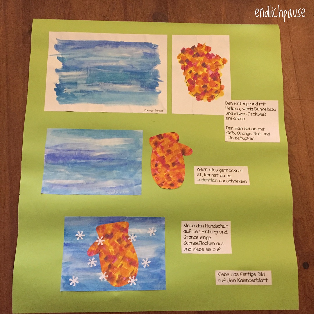 Wir beginnen in der kommenden Woche direkt mit dem Januar und ich habe dazu geplant, die Kunststunden in den Wochenplan einzubauen. Die Kinder erhalten eine Anleitung und die Vorlagen und sollen das Bild selbstständig gestalten.