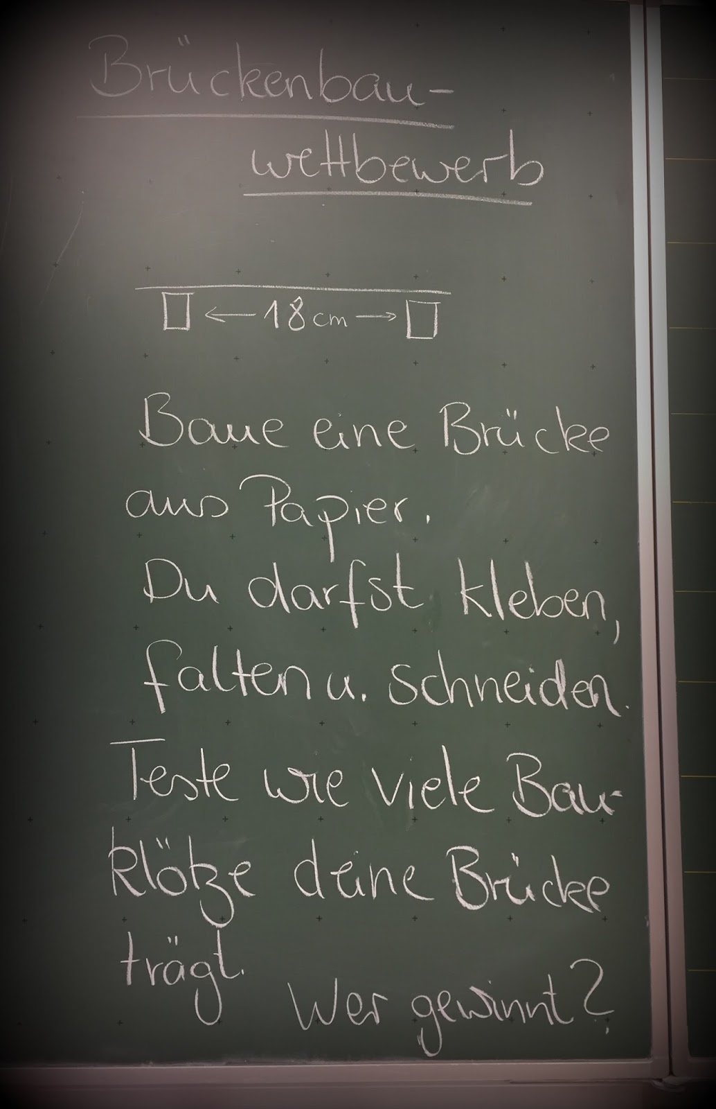 Die AG :o) Am Dienstag bauten wir Brücken… Die stabilste trug 1780 Gramm!