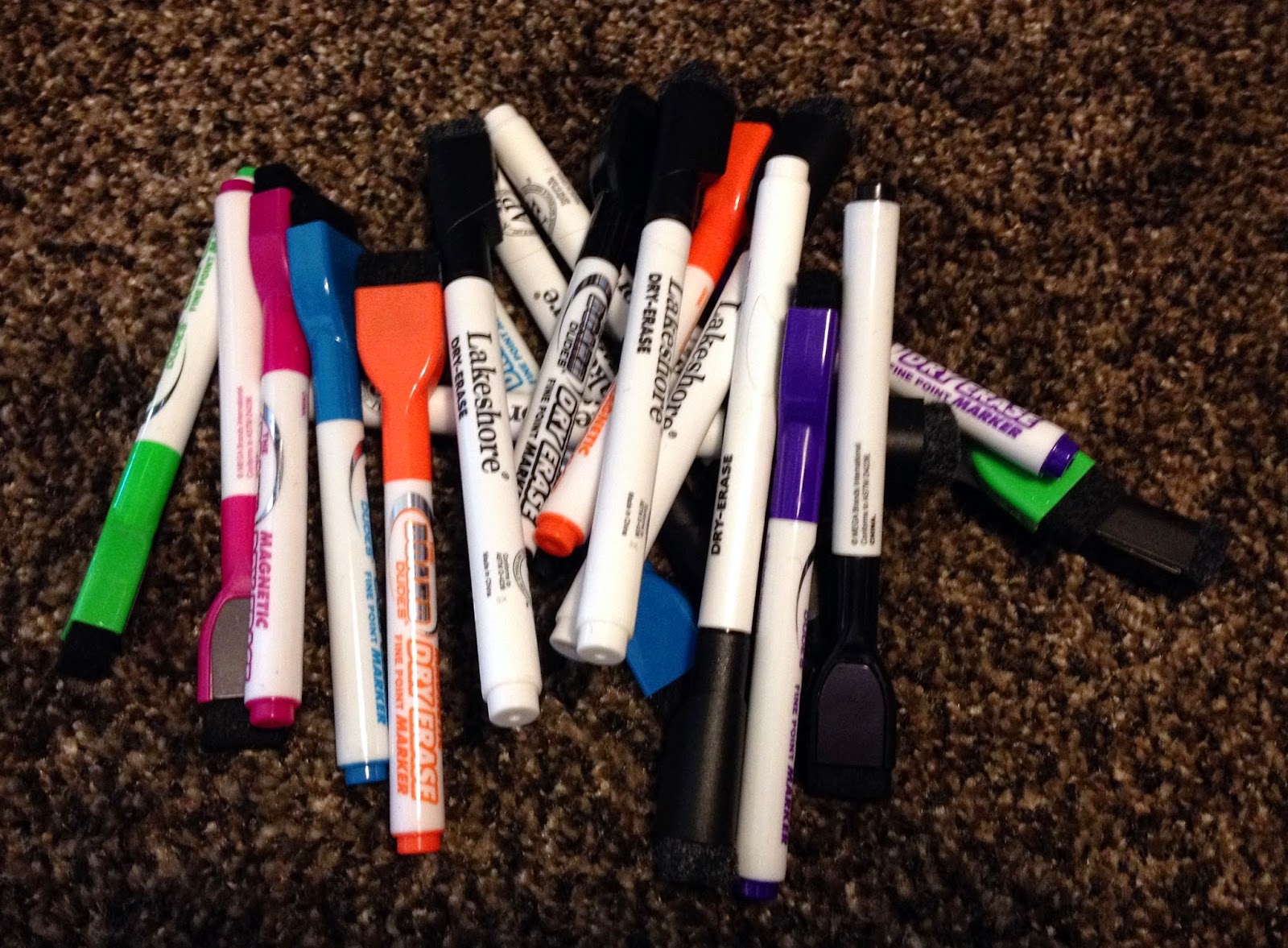 Und jede Menge trocken abwischbare Stifte. Die sind dort viel günstiger als hier…