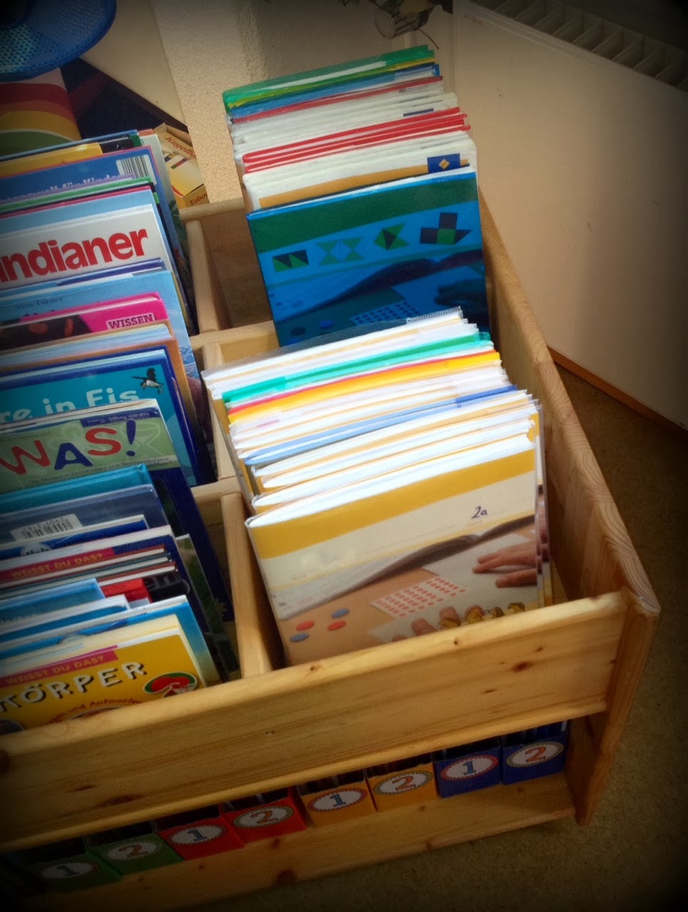 Seit Wochen überlege und überlege ich, wo ich die Bücher im Klassenraum hinpacken kann. Und seit Kurzem, wohin die Stehordner für unsere Lolas. Heute – plötzlich mitten im Unterricht – die Lösung: DER BÜCHERWAGEN!!!