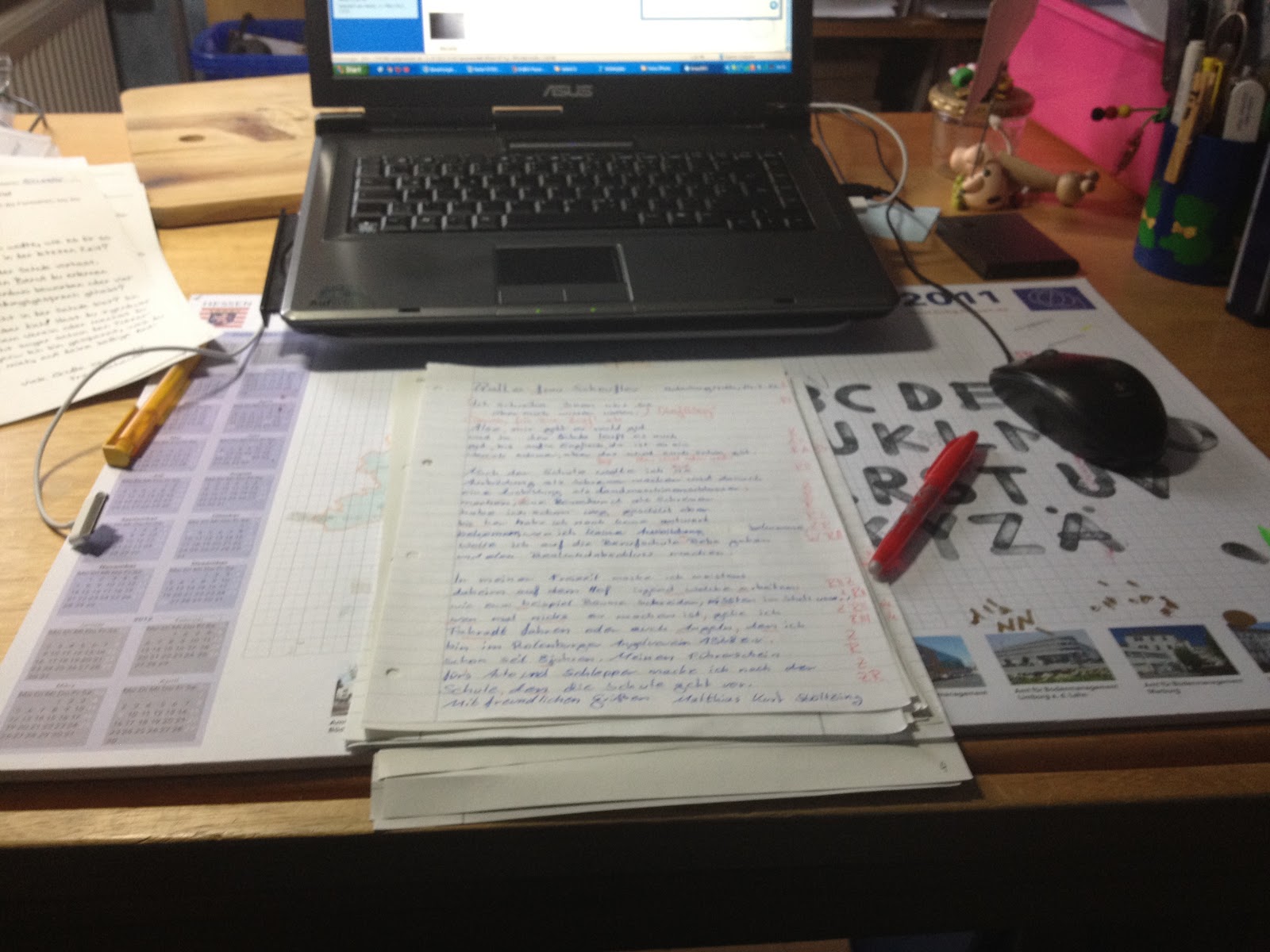 Seit nun mehr über 2 Stunden habe ich mich im – gestern aufgeräumten – Büro verschanzt und leide! Ja, ich leide… Deutscharbeiten korrigieren gehört nun wirklich nicht zu meinen Lieblingsaufgaben und ich schiebe und schiebe es hinaus, bis es gar nicht mehr geht! Zum Glück habe ich mir gestern schon ein Bewertungsschema zusammengebastelt… Mache ich immer so, erleichtert die Arbeit und ist dann hinterher immer gut erklärbar.