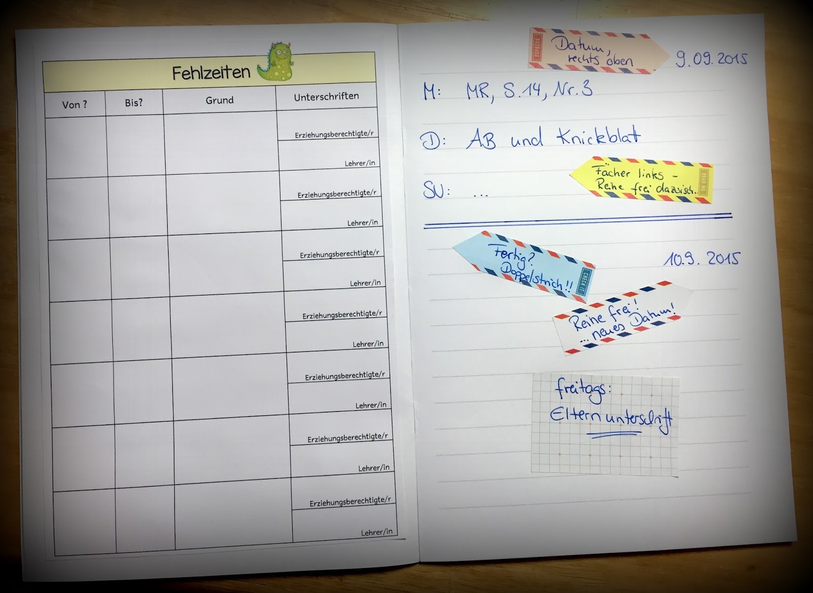 Sieht Klasse aus! Wie handhabst du es,wenn die Listen vorne( Fehlzeiten,nachzuholende Aufgaben, Einzahlliste ….) voll sind? Klammerst du eine neue darüber.Oder kleben die Kinder die neue Liste einfach im Verlauf des Heftes ein. Ich hatte bis jetzt nur eine Einzahlliste. Die habe ich auf die letze Seite des Heftes geklebt und die neue Liste immer eine Seite davor.