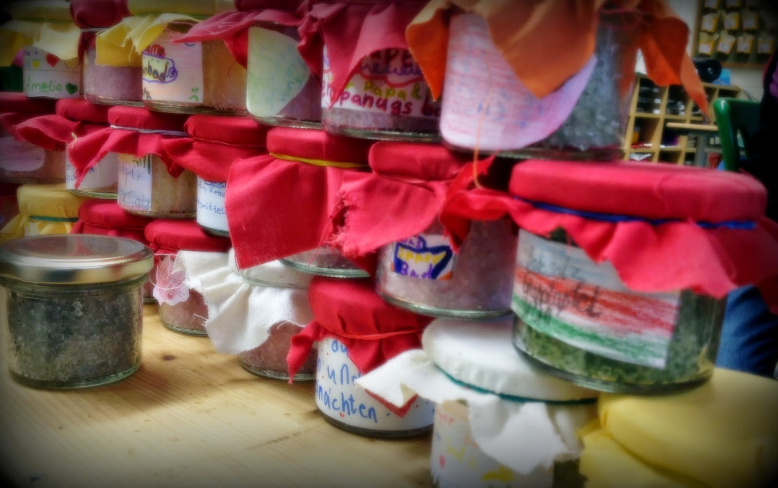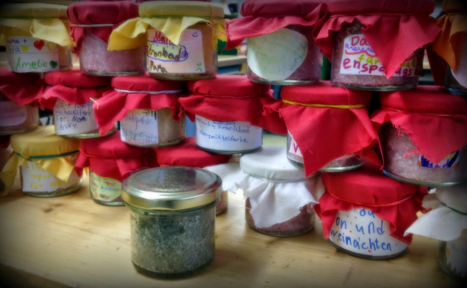 Ich habe auch schon mal Badesalz mit meinen Kids gemacht. War eine riesen Sauerei! Wie hast du das gelöst?