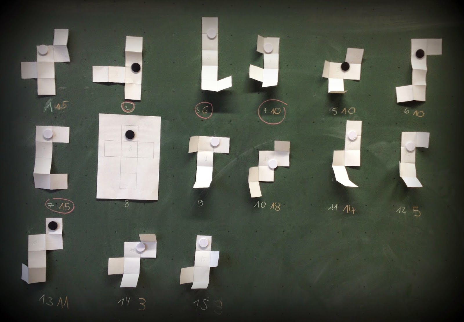 hingen an der Tafel und die Kinder spekulierten wild, aus welchen sich wohl ein Würfel falten ließe. Einige Kinder hatten direkt auch gute